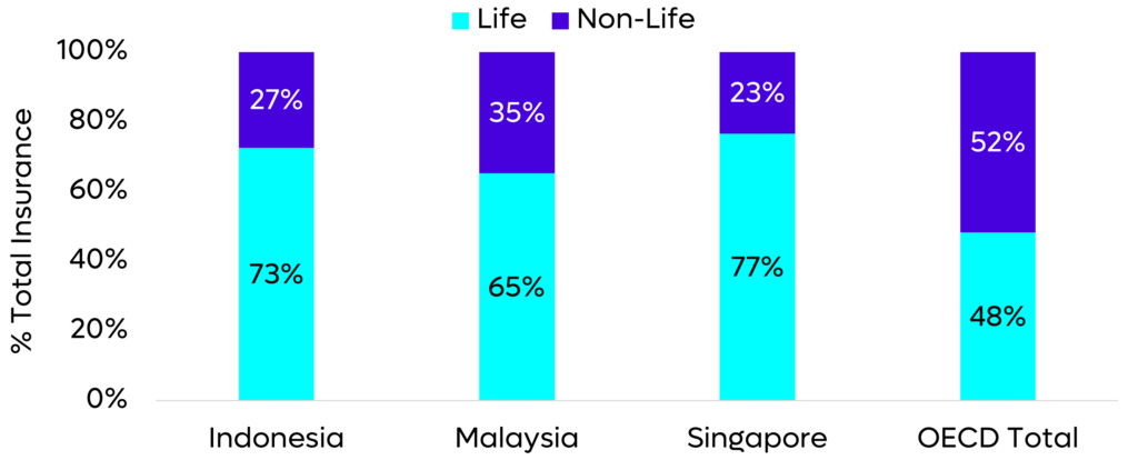 Fig 6. Life and Non-Life in SEA vs OECD Total