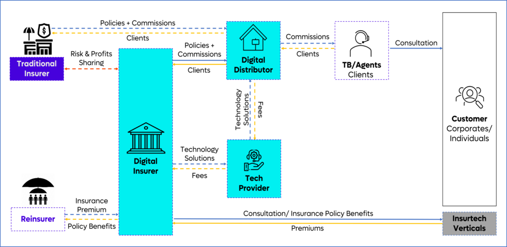 - Tech Provider: These players supply the software, APIs, and analytics that power digital transformation for insurers and distributors. They help improve efficiency, customer experience, and decision-making across the insurance value chain.