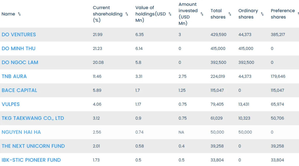 The top shareholder, with a nearly 22% shareholding, is Vietnamese VC firm DoVentures, which has been on VUIHOC’s cap table since 2022.